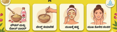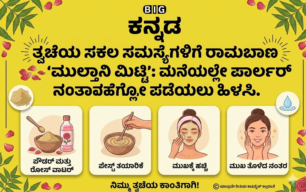 1. ಎಣ್ಣೆ ಚರ್ಮಕ್ಕೆ (Oily Skin): ಮುಲ್ತಾನಿ ಮಿಟ್ಟಿಯೊಂದಿಗೆ ಸ್ವಲ್ಪ ರೋಸ್ ವಾಟರ್ (ಗುಲಾಬಿ ಜಲ) ಸೇರಿಸಿ ಪೇಸ್ಟ್ ಮಾಡಿ ಹಚ್ಚಿ. 15 ನಿಮಿಷಗಳ ನಂತರ ತಣ್ಣೀರಿನಲ್ಲಿ ತೊಳೆಯಿರಿ.